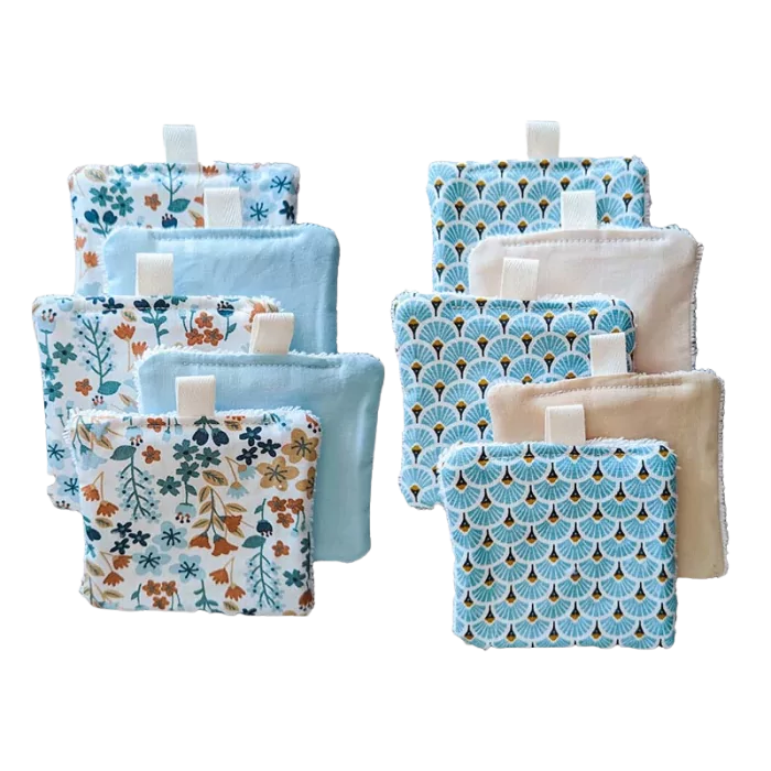 Vous aurez le choix entre des lingettes en éponge de coton ou en velours de coton.